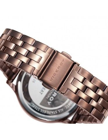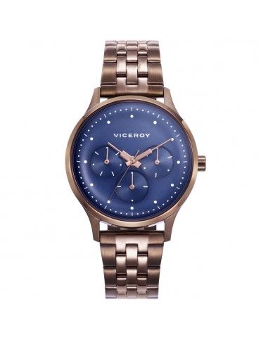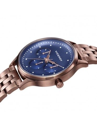 Reloj de Mujer multifunción Viceroy Switch 461126-36. Es un reloj diseñado por la marca Viceroy, para mujer. Es un modelo analógico con movimiento de cuarzo de tres agujas en color bronce como los indicadores horarios en forma de puntitos. La correa en acero inoxidable color marrón con cierre desplegable con pulsadores. La esfera de color azul.