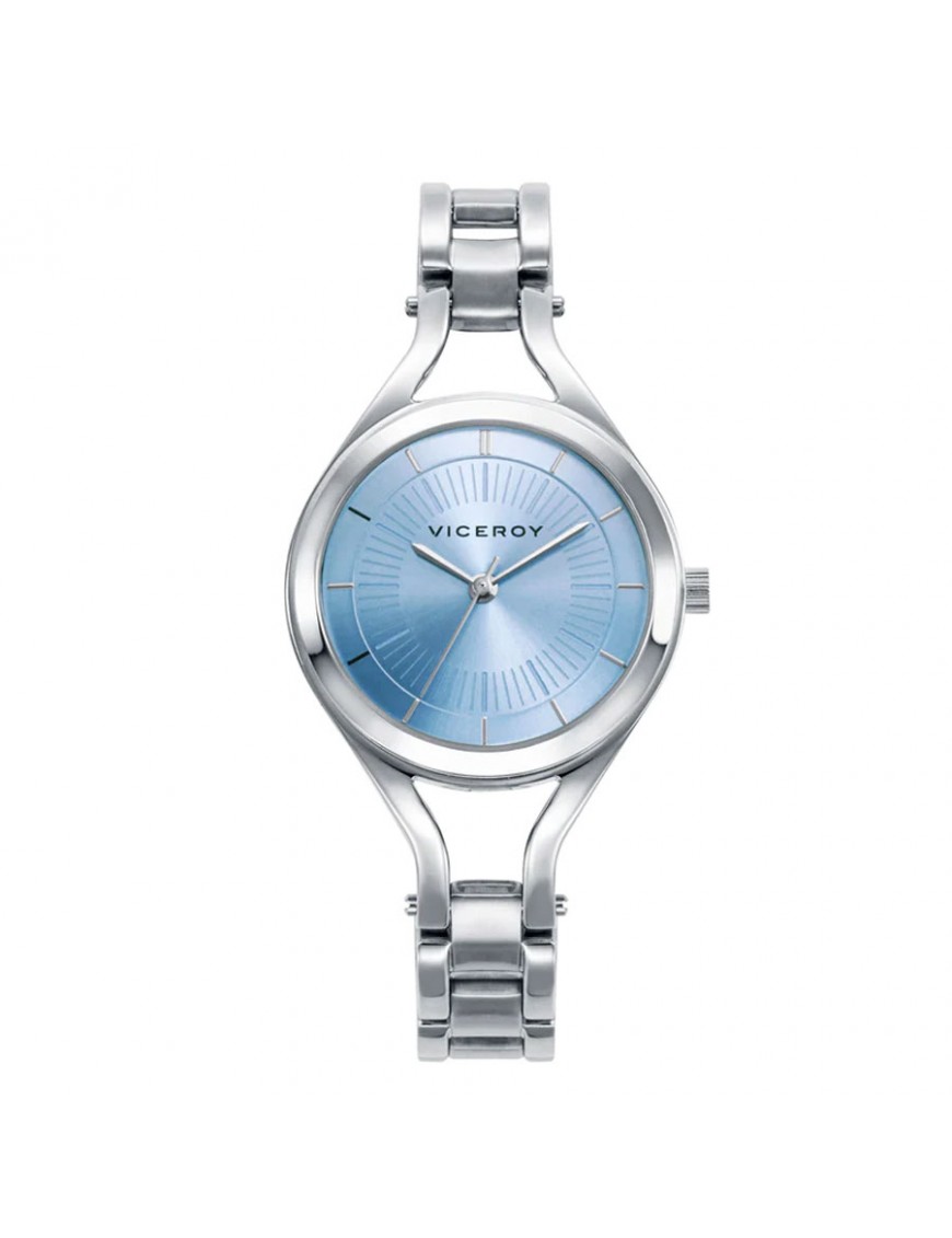 Reloj Viceroy para mujer 401176-37. La esfera es de acero y mide 30 mm de diámetro. La pulsera es del mismo material y lleva cierre de doble pulsador. No es sumergible (3ATM) y sólo admite leves salpicaduras. Garantía de tres años.