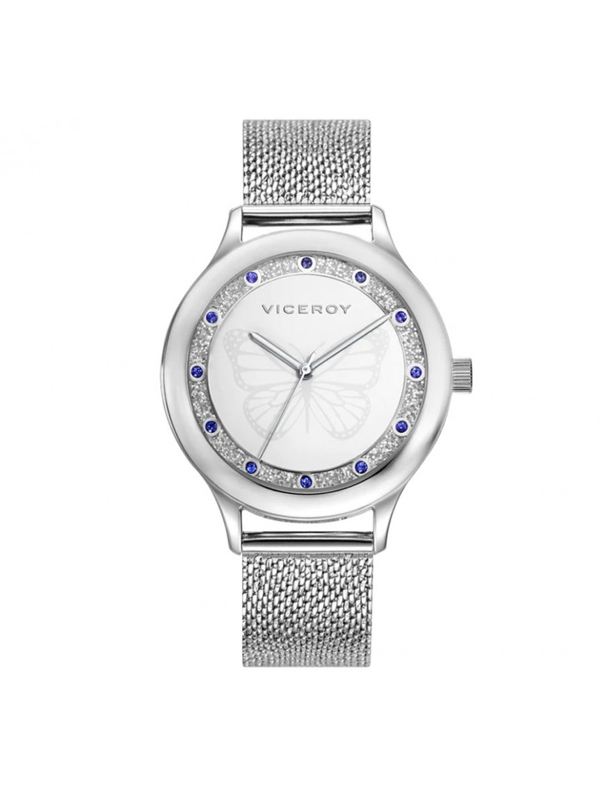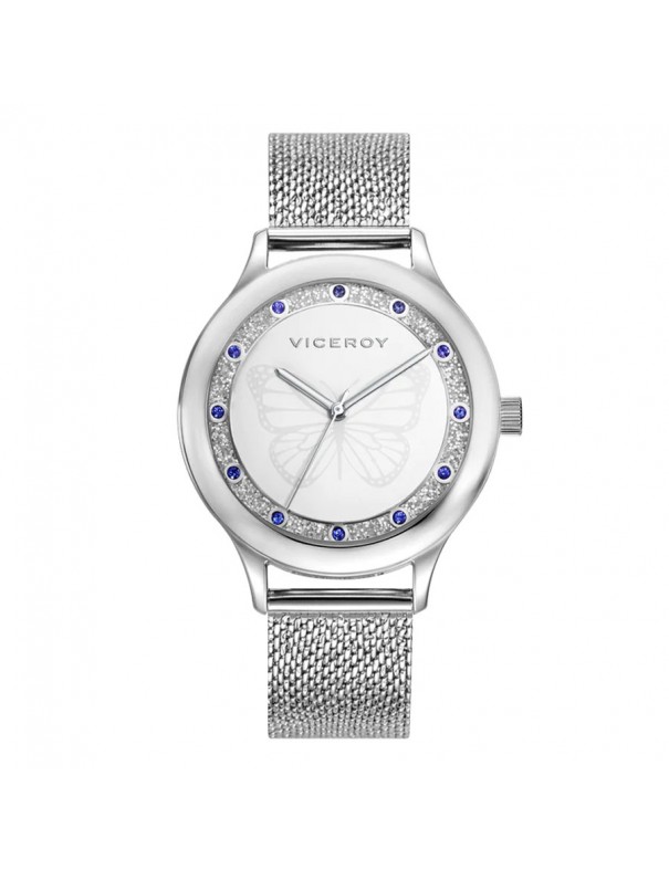 Reloj Viceroy para mujer 401264-07. La esfera es de acero y mide 36 mm de diámetro. La pulsera es del mismo material y lleva cierre ajustable. No es sumergible (3ATM) y sólo permite leves salpicaduras. Garantía de tres años.
