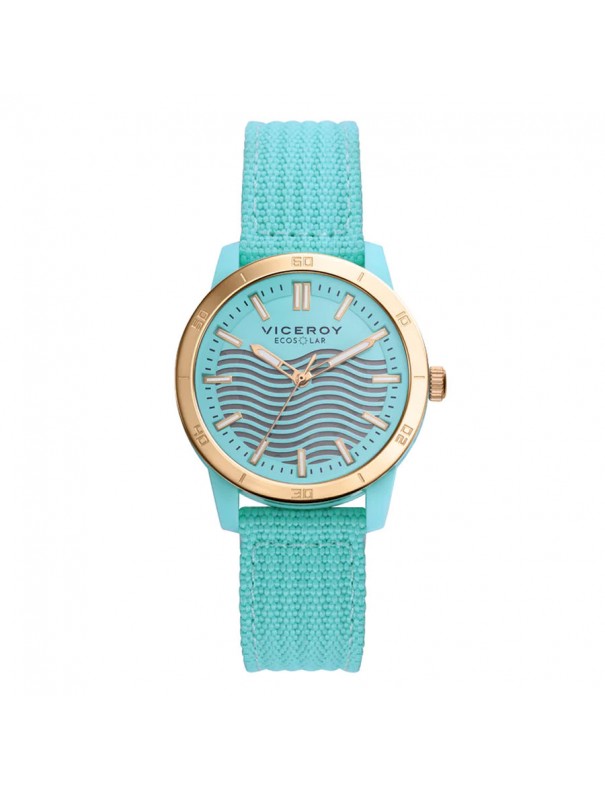 Reloj Viceroy para mujer 41114-67. La pulsera es de nylon procedente de plástico reciclado con hebilla. La esfera es de acero y mide 36 mm de diámetro. No es sumergible (3ATM) y sólo admite leves salpicaduras. Garantía de tres años.