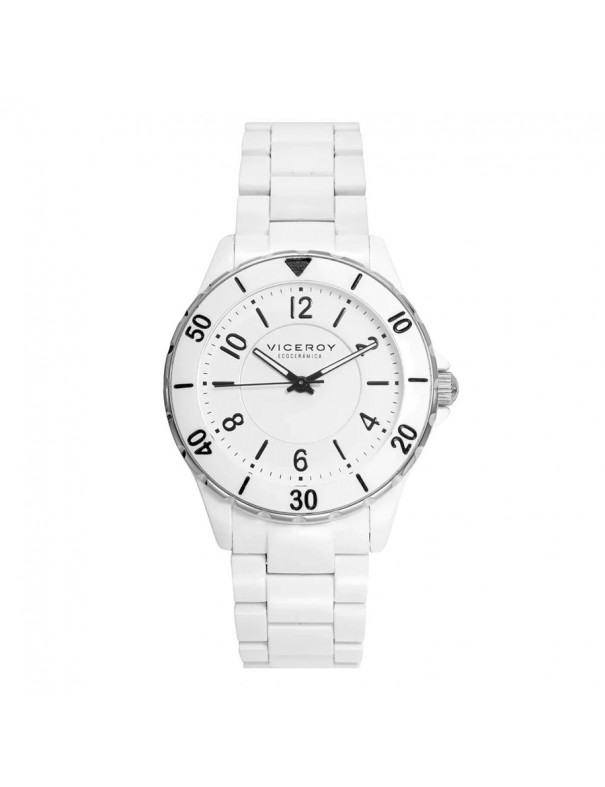Reloj Viceroy para mujer 41116-06. La esfera es de acero y mide 36 mm de diámetro. La pulsera es de cerámica de origen biológico con cierre de doble pulsador. Es sumergible a 5 ATM por lo que permite el nado en superficie sin inmersión. Garantía de tres años.