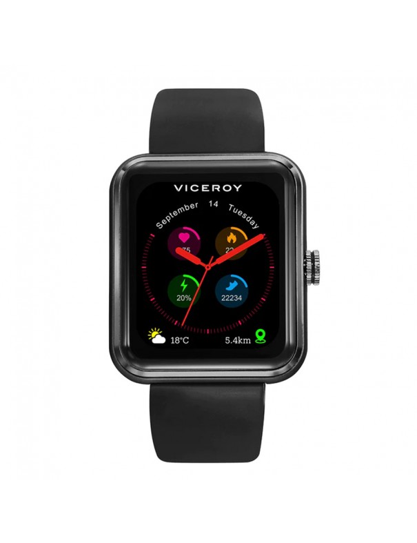 Reloj Viceroy Smart Unisex 41117-50. La esfera es de aluminio y mide 38 mm de ancho. La pulsera es de silicona con hebilla. Incluye funciones smart como podómetro, cuenta calorías, medición de presión arterial, modo deporte, notificaciones de aplicaciones y de llamadas , entre otros.