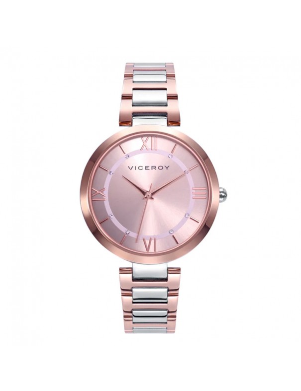 Reloj Viceroy para mujer 42428-73. La esfera es de acero y mide 35 mm de diámetro. La pulsera es del mismo material y lleva cierre de doble pulsador. Es sumergible a 5 ATM y permite el nado en superficie sin inmersión. Garantía de tres años.
