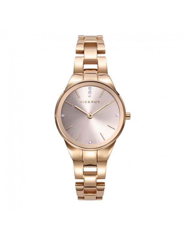 Reloj Viceroy para mujer 42430-27. La esfera es de acero y mide 30 mm de diámetro. La pulsera es del mismo material y lleva cierre de presión. Es sumergible a 5 ATM y permite el nado en superficie sin inmersión. Garantía de tres años.