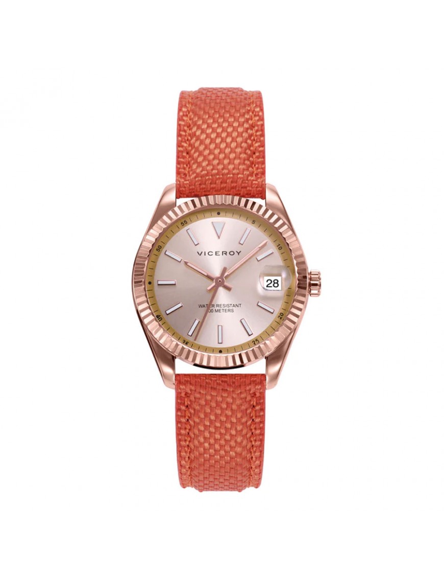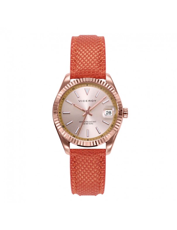 Reloj Viceroy para mujer 42436-77. La esfera es de cero y mide 32 mm de diámetro. La pulsera es de nylon con hebilla. Incluye calendario. Es sumergible a 10 ATM por lo que permite el buceo sin botella. Garantía de tres años.