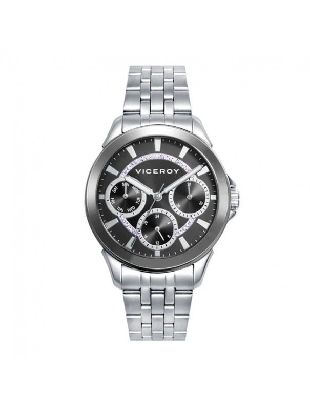Reloj Viceroy Chic para mujer 401198-57. La esfera es de acero y mide 33 mm de diámetro. La pulsera es de acero y lleva cierre con doble pulsador. Es un modelo multifunción que indica día de la semana y día del mes. No es sumergible (3ATM) y tiene tres años de garantía.