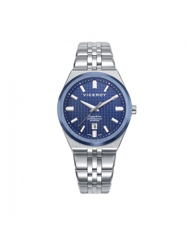 Reloj Viceroy Swiss Made Mujer Azul 45114-37. Caja de acero de 34 mm en color plata, esfera azul bajo cristal de zafiro, correa de acero también en tono plata con cierre desplegable de pulsador. Funciones analógicas de horas, minutos y calendario. Garantía de 3 años.