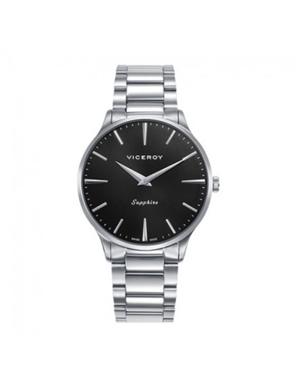 Reloj Viceroy Swiss Made Negro Hombre 45119-57. Caja de acero de 40 mm en color plata con esfera negra bajo cristal de zafiro. Correa de acero color plata con cierre desplegable de pulsador. Movimiento de cuarzo analógico suizo con función de horas y minutos. Garantía de 3 años.