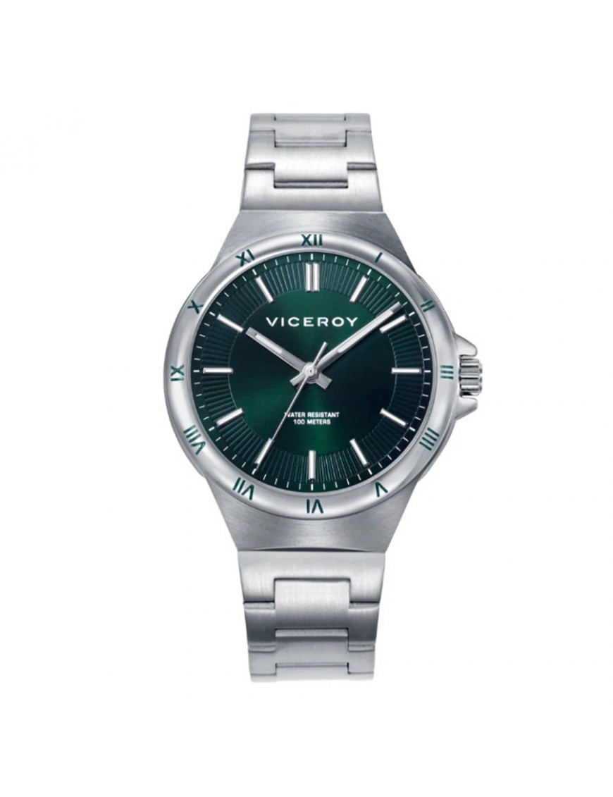 Reloj Viceroy Mujer Esfera Verde 401294-67. Caja de acero, esfera verde, brazalete de acero con cierre desplegable con pulsadores; movimiento de cuarzo de tres agujas; resistente al agua hasta 10 bar. Garantía de 3 años.