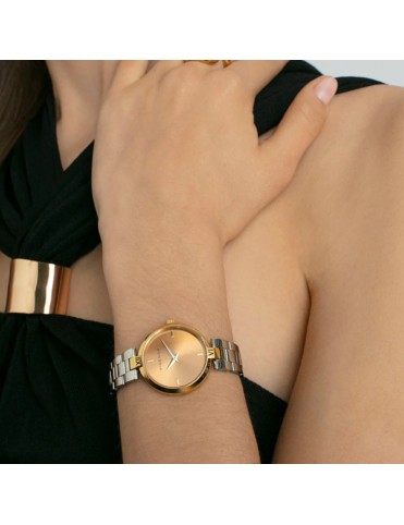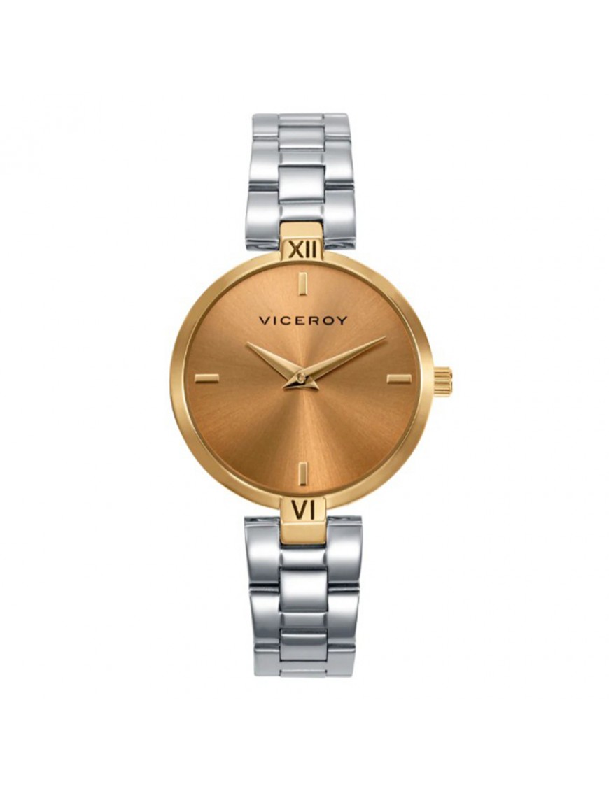 Reloj Viceroy Acero Mujer 401300-97. Caja de acero inoxidable con acabado IP dorado y esfera dorada; brazalete de acero inoxidable con cierre desplegable con pulsador. Movimiento de cuarzo analógico de dos agujas. Resistente al agua hasta 3 ATM. Garantía de 3 años.