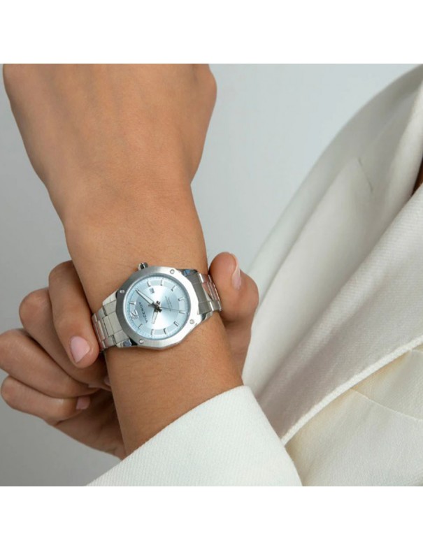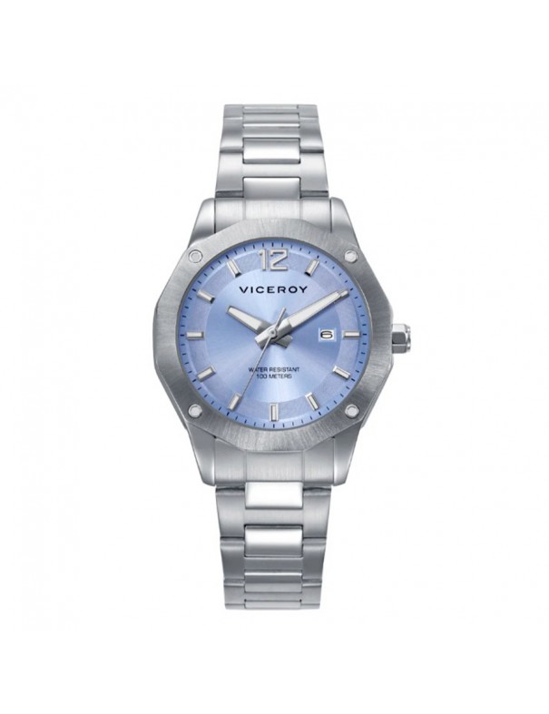 Reloj Viceroy Acero Mujer 401302-35. Caja de acero inoxidable color plateado, esfera azul; brazalete metálico de acero plateado con cierre desplegable. Movimiento de cuarzo analógico con tres agujas y calendario. Sumergible hasta 10 ATM. Garantía de 3 años.