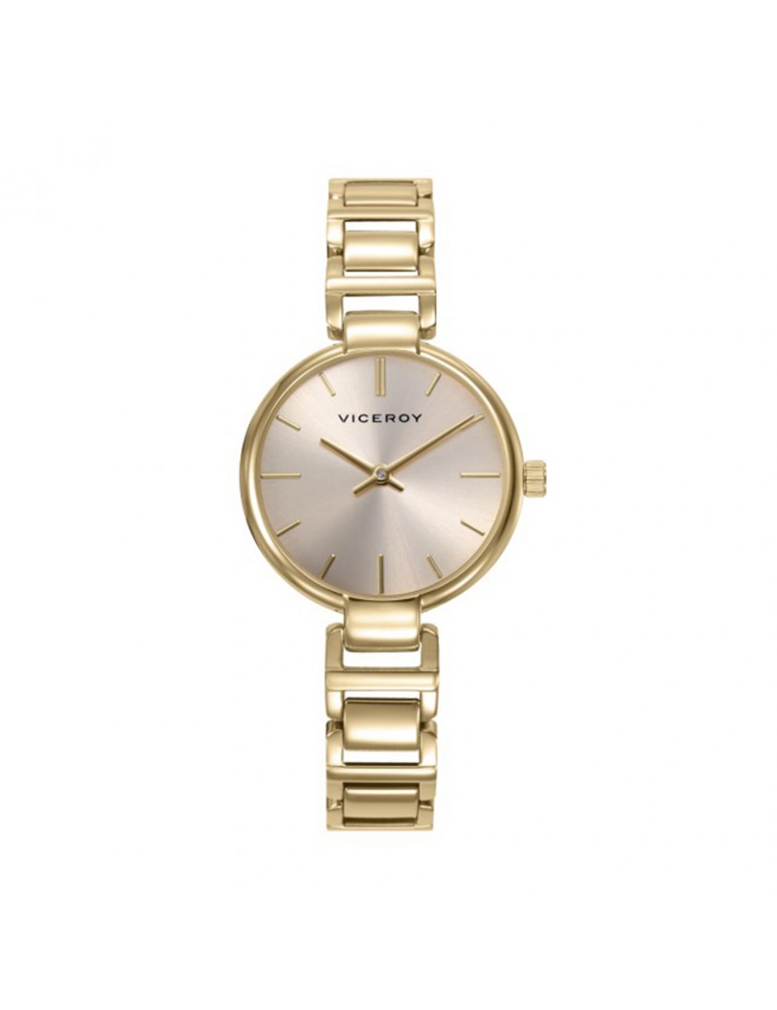Reloj Viceroy Dorado 401306-27. Reloj de mujer con caja y brazalete de acero inoxidable acabado en IP dorado, esfera dorada y cristal mineral. Tiene movimiento de cuarzo analógico, diámetro de caja de 30 mm y cierre de joyería.