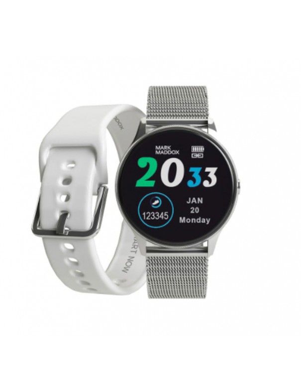 Smartwatch Mark Maddox Mujer MS1000-80, con correa milanesa de acero y correa de regalo de caucho blanco.