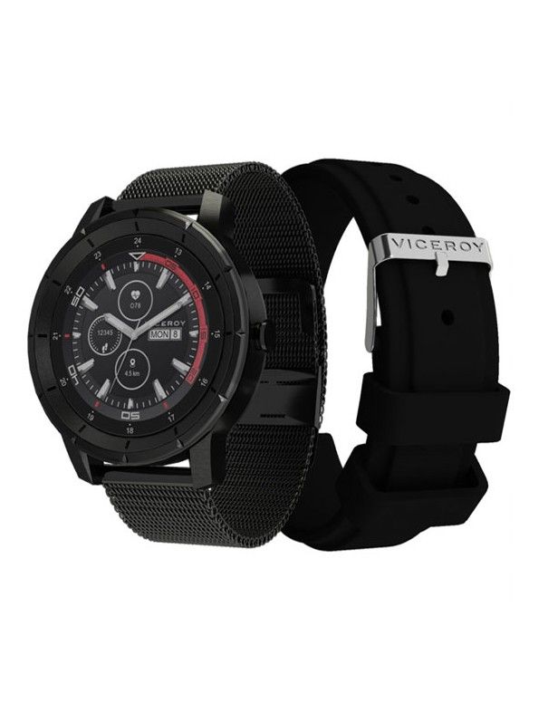 Pack Reloj Smart Viceroy Hombre Aluminio 41111-10, con pantalla de 1,28 pulgadas y resolución de 240x240. Caja de aluminio con esfera de 48mm de diámetro. Pulsera de acero milanesa en negro y una segunda de caucho negra. Batería de 230mAh.